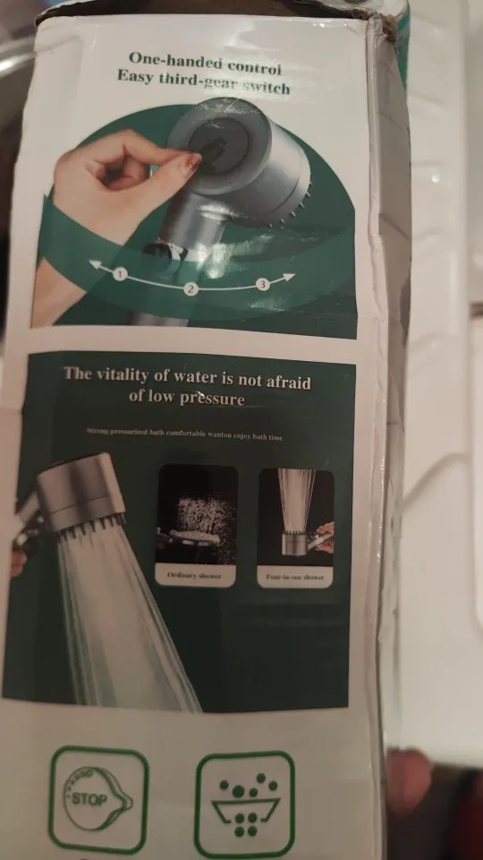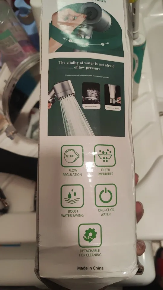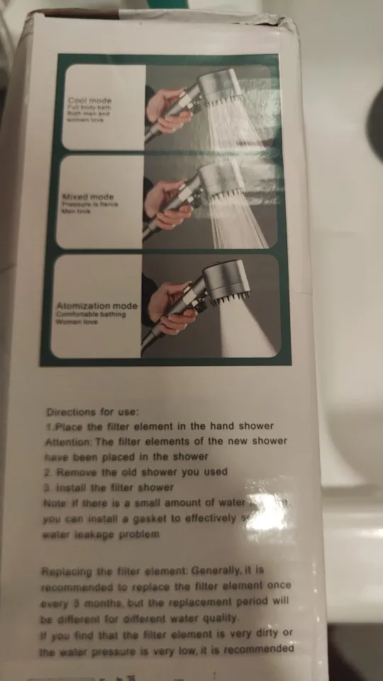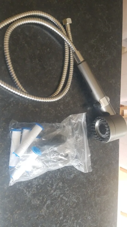 Pack containing shower head, 5 filters, holder and 145 cm shower hose.